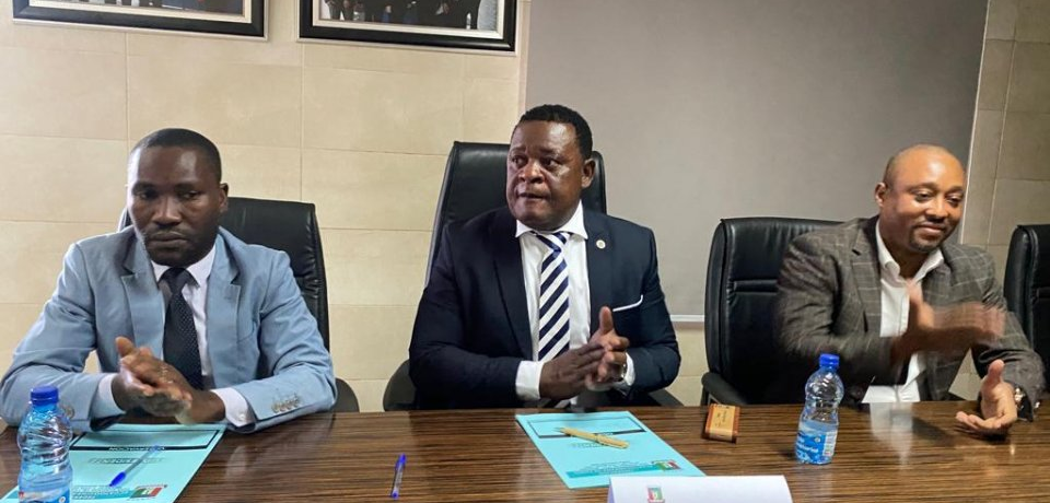 Venancio Tomás NDONG MICHA y Tobias NZANG firman un acuerdo de colaboración entre FEGUIFUT y la empresa PEGASOS. El acuerdo forma parte de la política de la Casa del Futbol Nacional de hacerse visible en todas las instituciones del país.