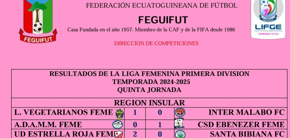 Después de un ligero parón por las fiestas navideñas y año nuevo,este fin de semana volvió la Liga Femenina de Fútbol de Guinea Ecuatorial -LIFGE en su quinta jornada.