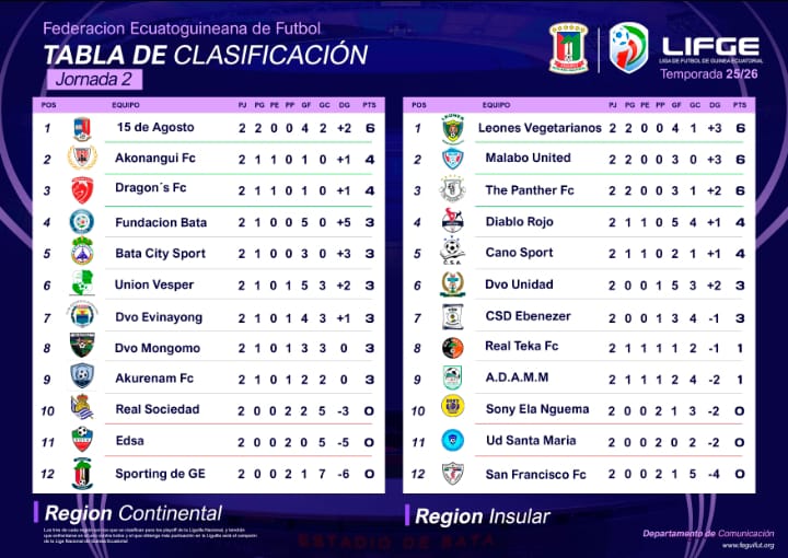 La competencia sube jornada tras jornada en la Liga de Fútbol de Guinea Ecuatorial (LIFGE). Este pasado fin de semana los amantes del fútbol disfrutaron al máximo de unos auténticos partidazos disputados tanto en la Región Insular como en la Región Continental.