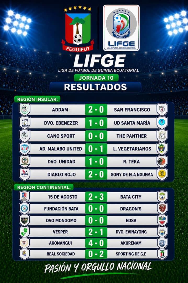 Este pasado fin de semana se han jugado los partidos de la décima jornada de la Liga de Fútbol de Guinea Ecuatorial (LIFGE).