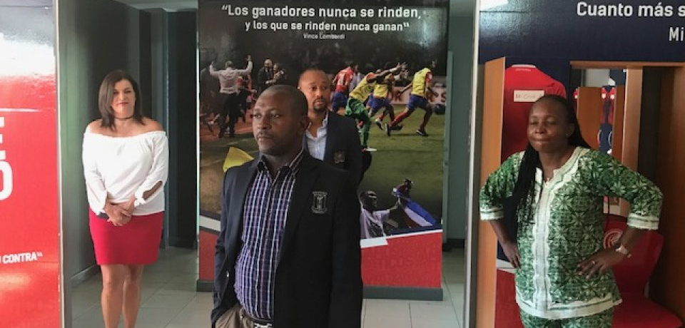 Tras su caluroso recibimiento en las instalaciones del Complejo Deportivo de la FEDEFUTBOL PLYCEM, acompañados en todo momento de la mano de la Jefa de Prensa Deportiva del país, la prestigiosa periodista Doña Adriana Duran; la Delegación Ecuatoguineana recorrió todas las instalaciones al tiempo que fue informada del nacimiento del proyecto de construcción del Complejo PLYCEM, el cual a su vez cobra vida gracias al macro proyecto Goal de la Federación Internacional de Fútbol Asociación, programa de desarrollo creado desde 1999, por iniciativa de la Presidencia de la FIFA, en beneficio de las Federaciones de Fútbol con necesidades específicas en áreas tales como la Administración, Capacitación, Formación e Infraestructuras entre otras.